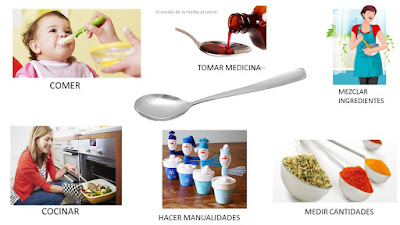 Objetos de la vida cotidiana (cuchara, taza, plato, coche, muñeco, cepillo de dientes, etc.).
