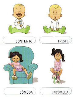 Triste (traurig) – contento (glücklich).