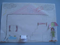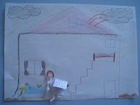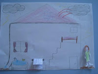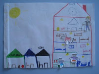 En el segundo ejemplo, está dibujada una casa, en la que viven un papá, una mamá y dos nenes. Los otros edificios representan la oficina, las tiendas y la escuela. Hay montones de posibilidades de contar e interpretar la historia.