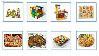 En esta ocasión nos servimos de las categorías para seguir estimulando las primeras frases sencillas. Ya antes habíamos trabajado la categorización (ver la entrada “Parejas lógicas y otras asociaciones”), y variando un poco esos ejercicios provocaremos que el niño arme nuevas frases.
