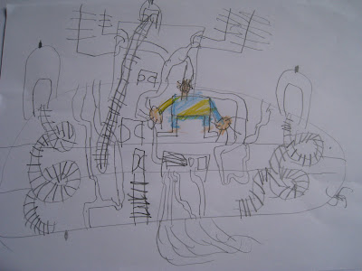 Erik tiene una enorme capacidad para definir el tamaño de las cosas porque el dibujo muestra la proporcion exacta, de el, dento del submarino .
