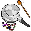 Debajo de la cacerola hemos colocado letras con las que se puede formar una palabra; empezaremos con palabras sencillas: C-A-S-A, pero podemos complicarlo: E-L-E-F-A-N-T-E. Como apoyo podríamos tener preparado un pictograma con la palabra escrita.