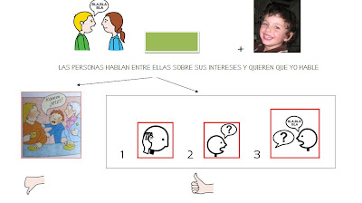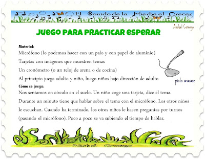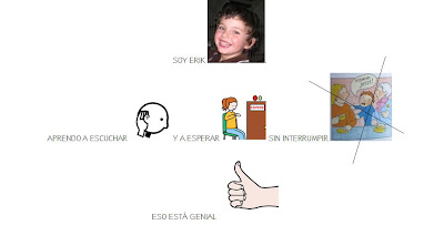 He preparado un programa de trabajo «aprender a escuchar y a esperar sin interrumpir» que empezaremos esta tarde. He incluido historia social, fichas de trabajo, actividades, mímica y gestos, así como diferentes juegos. Imagino que conforme lo vayamos trabajando surgirán temas nuevos. Con todo, creo que es una base muy buena para empezar: