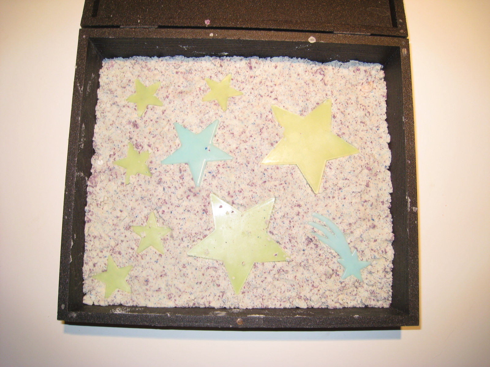 La decoramos con las estrellas que se iluminan en la oscuridad:
