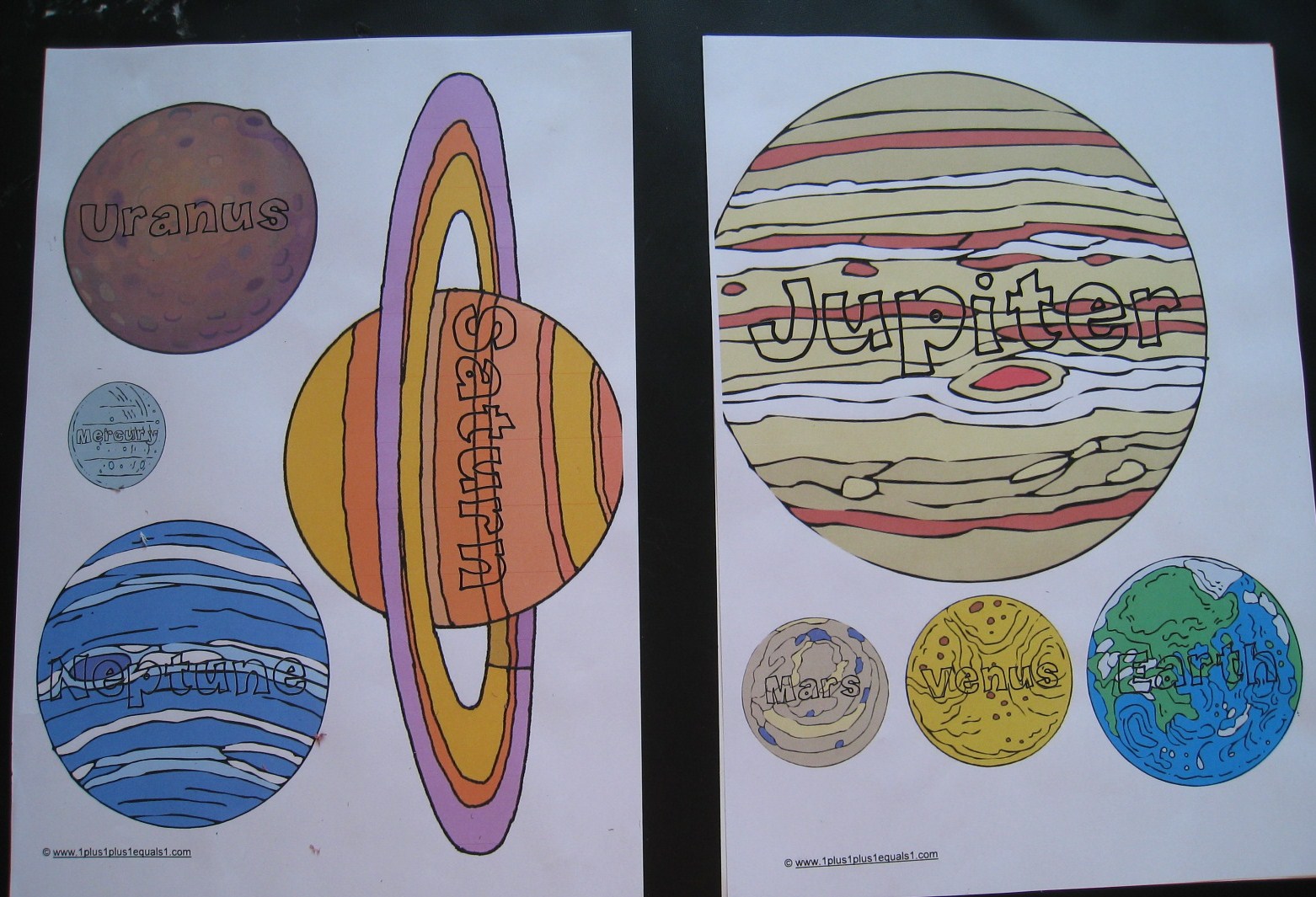 Incluye fichas con planetas y sus nombres, para imprimir o para memory. Otras para hacer un móvil, mirad qué chulas: