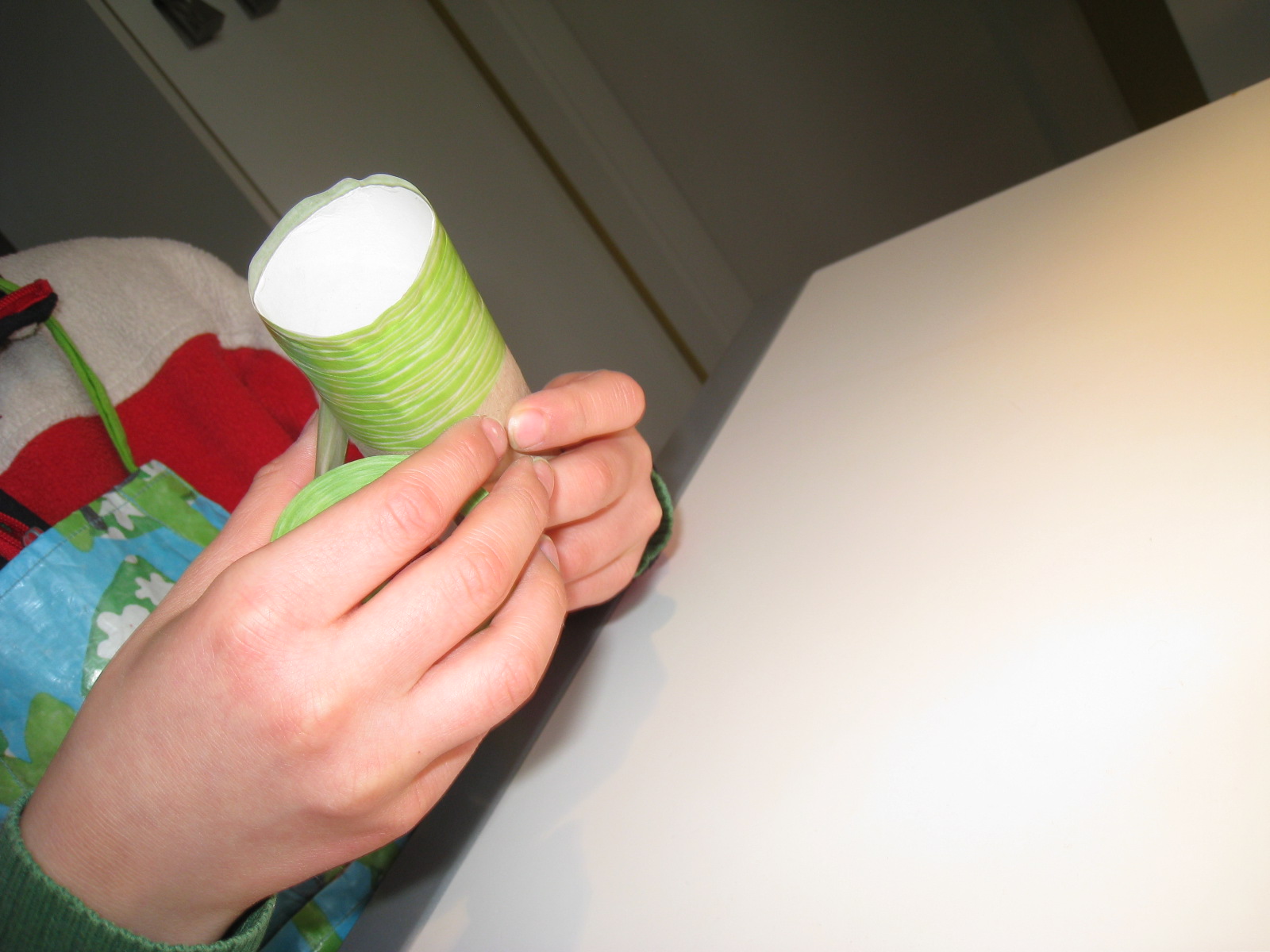 Listos los huevos, nos faltaba un conejo de Pascua, que Erik solito se ha hecho con un rollo de papel higiénico: