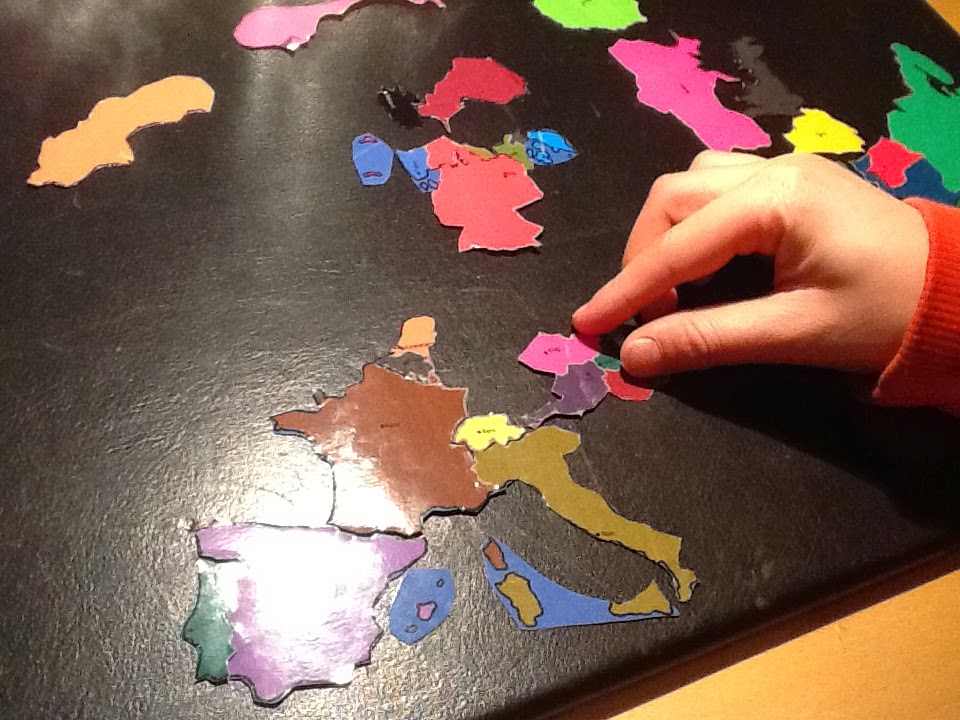 Colocas sobre una mesa y… das la orden: coge Francia, coloca Francia.