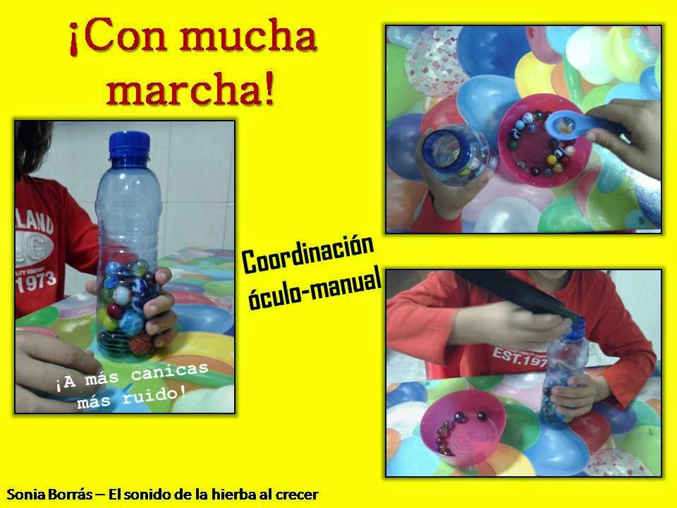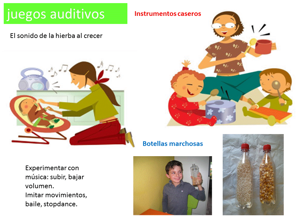 a ir reuniendo juegos, botellas sensoriales marchosas y otros objetos sonoros