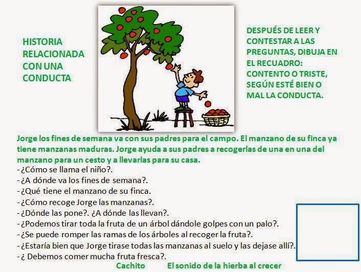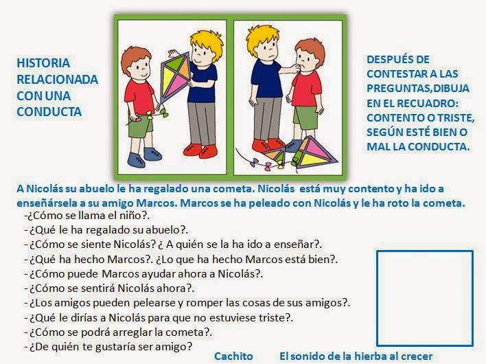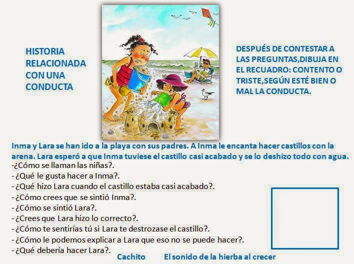 Seguimos creando historias para trabajar con preguntas dirigidas. En esta entrada vamos a ir recogiendo historias relacionadas con conductas, ¡avanzando siempre! Y va un beso enorme a Carmen Cachito Fernández Cacho por su gran trabajo para todas las hierbitas.