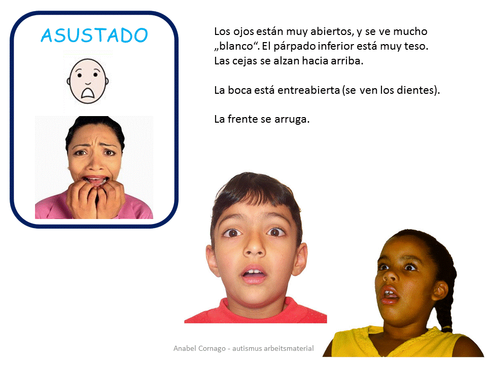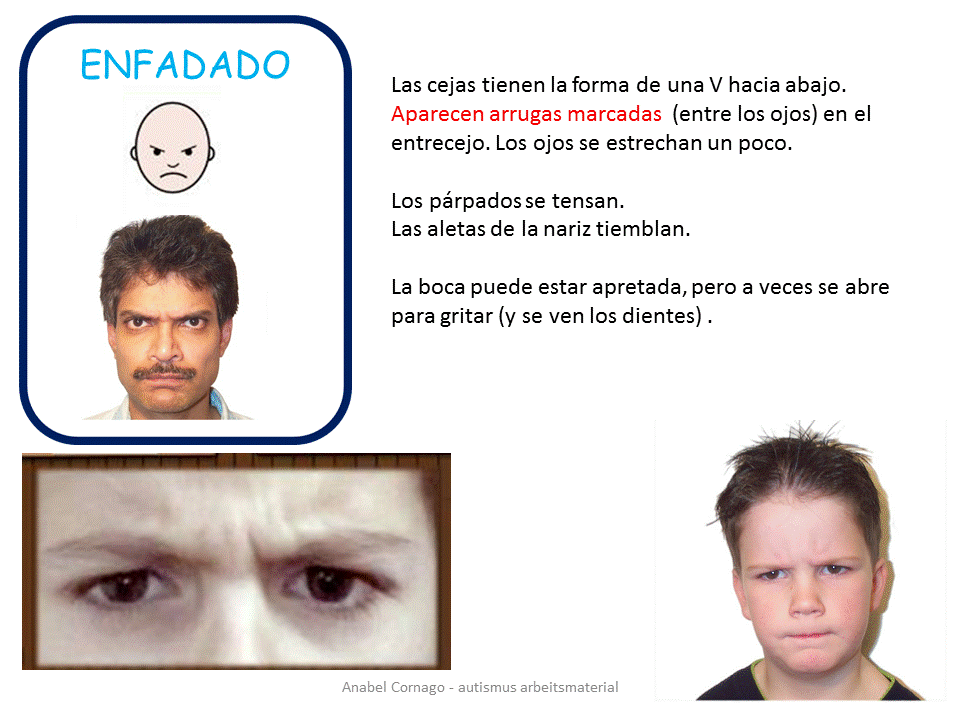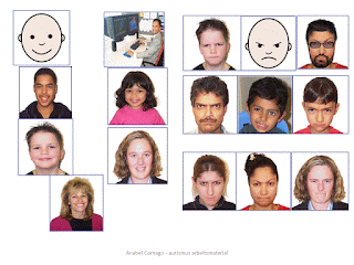 Comparto hoy un poqito del material de mis talleres en referencia a la identificación de las expresiones faciales y corporales. Es un resumen muy completo del primer capítulo de El libro de las Emociones, que os podéis descargar en el blog. AQUÍ: