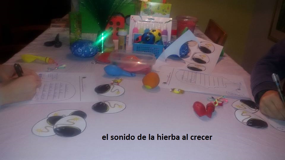 En Bombas que teniamos previmente recortadas, escribieron por detrás las diferentes palabras. Fuimos hablando en común por qué esa palabra le / les irritaba. Representamos algunas situaciones con teatrillos (legos o haciendo los niños y yo los diferentes papeles). Reforzamos con juegos como pásame la bomba, hinchar globos, meter las palabras dentro y explotar los globos…. La idea sobre todo es irles quitando importancia a esas palabras, y es maravilloso el contar con otro niño que le aclara a Erik por qué no hay que irritarse tanto. Que es normal que no le gusten, que a él también le pasa, pero que las controlamos.