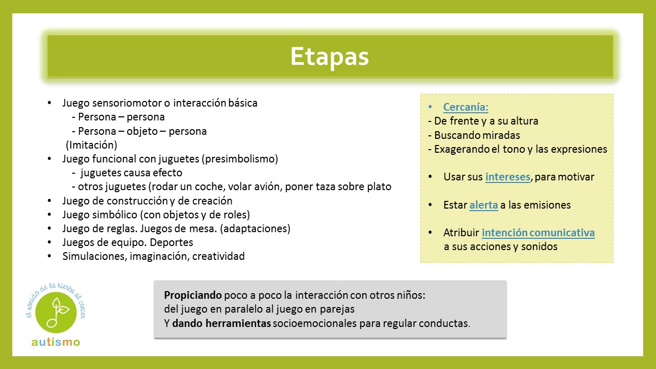 pegatinas). Preferencia por imitar actividades de la vida diaria (barrer) y por los juegos que le permiten probar sus destrezas