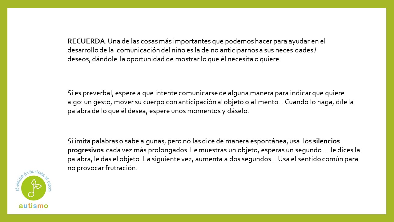 preverbal, frases de una o dos palabras con instrucciones precisas: “Pedro,