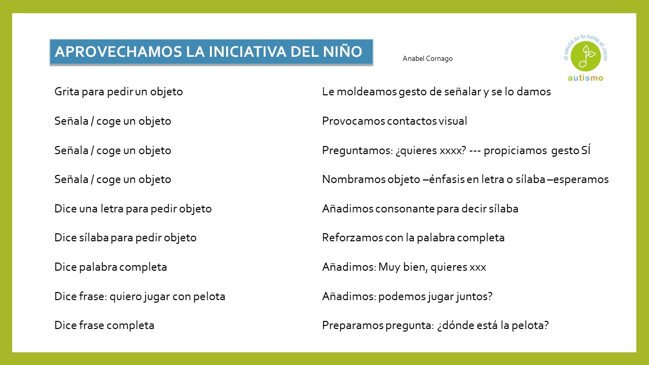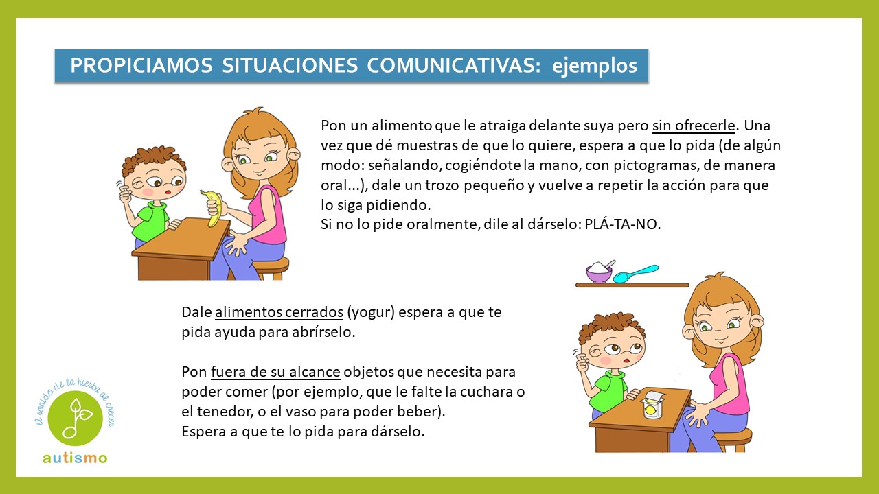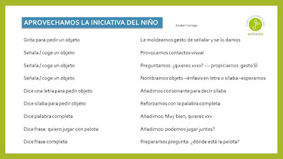 relaciona la ecolalia con aspectos del entorno, simplificándola y con demostraciones. Vocabulario muy familiar al niño