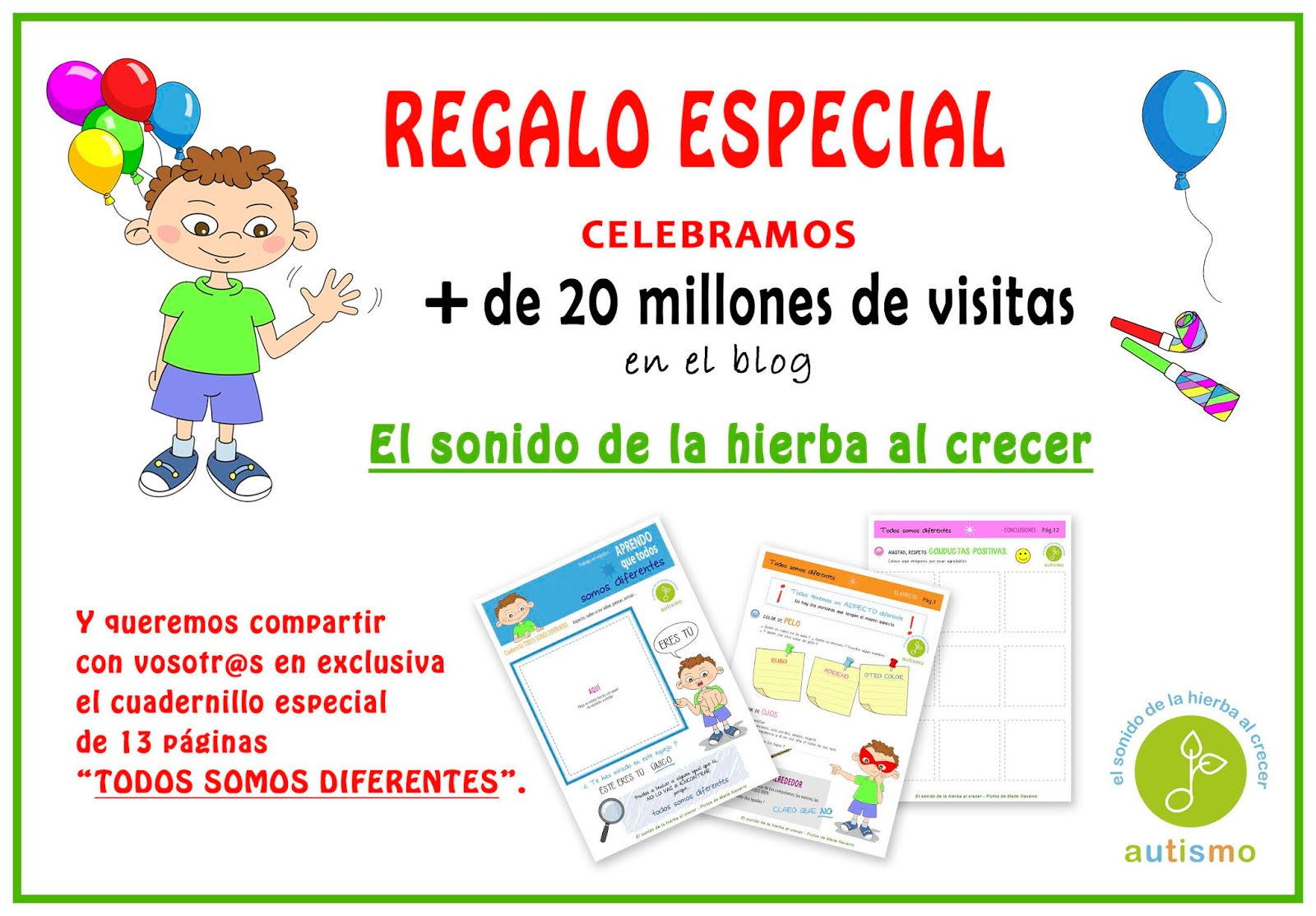 En este ocasión tan especial, quiero compartir con vosotros el Librito Interactivo Todos somos diferentes, que ha tenido ya más de medio millón de descargas, en una nueva versión especial, preciosa, maquetada por Maite Navarro, mi compi de pictogramas en el Manual de Teoría de la mente para niños con autismo y en el Manual del Juego para niños con autismo. Juntas estamos además en nuestra escuela de formación online.