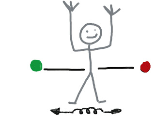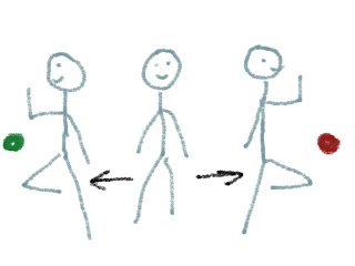vuestros peques aún no lo dominan: marcar cada lado con un color, rojo y verde
